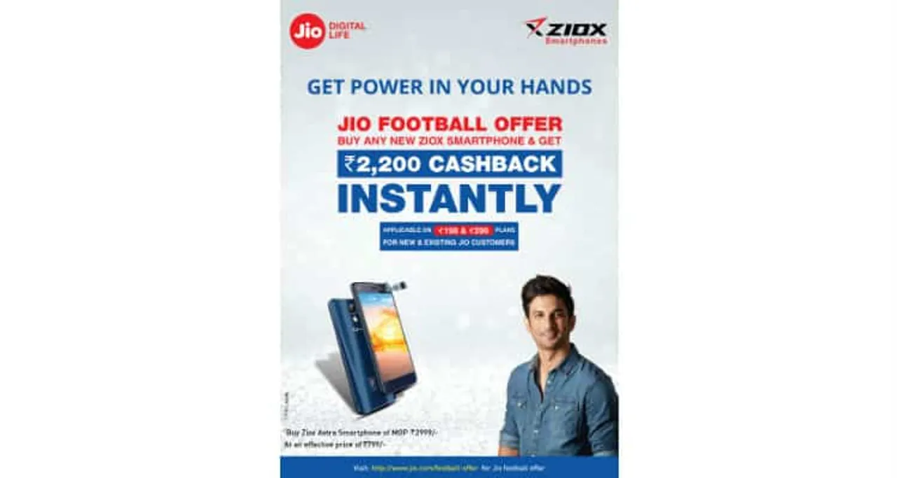 Ziox Mobiles announced successful association with Reliance Jio. Reliance Jio is offering Rs 2200 instant cashback through ‘Jio Football Offer’ on all new Ziox Smartphones. Under this offer customer will get 44 cashback vouchers of Rs 50 each will be disbursed to the customer at the very first recharge of Rs. 198 or Rs. 299 on or before 31st March 2018. This offer is applicable to both existing and new Jio customers.